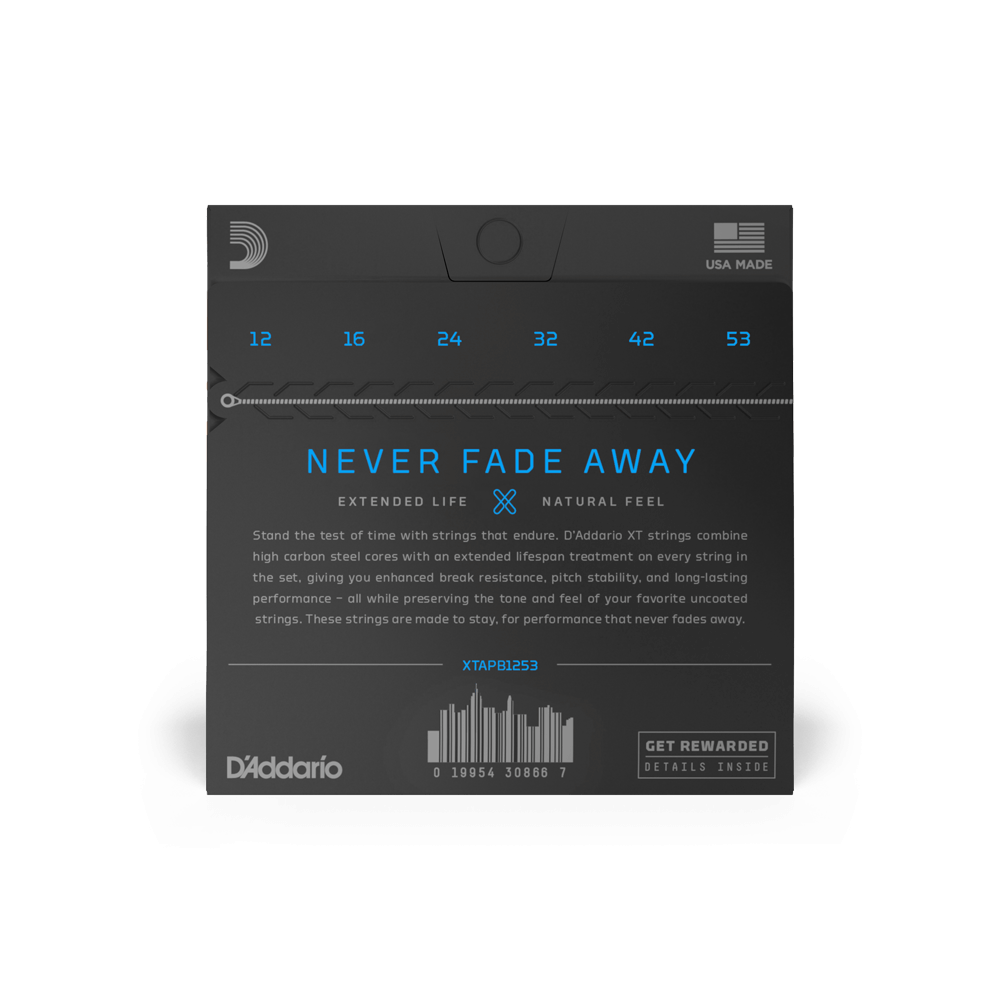 D’Addario XT Acoustic Phosphor Bronze strings combine our most popular acoustic alloy with an advanced corrosion resistance treatment on every string in the set, preserving the natural tone and feel of uncoated strings. Available for 6 and 12-string acoustic guitar ranging from extra-light to medium gauges.